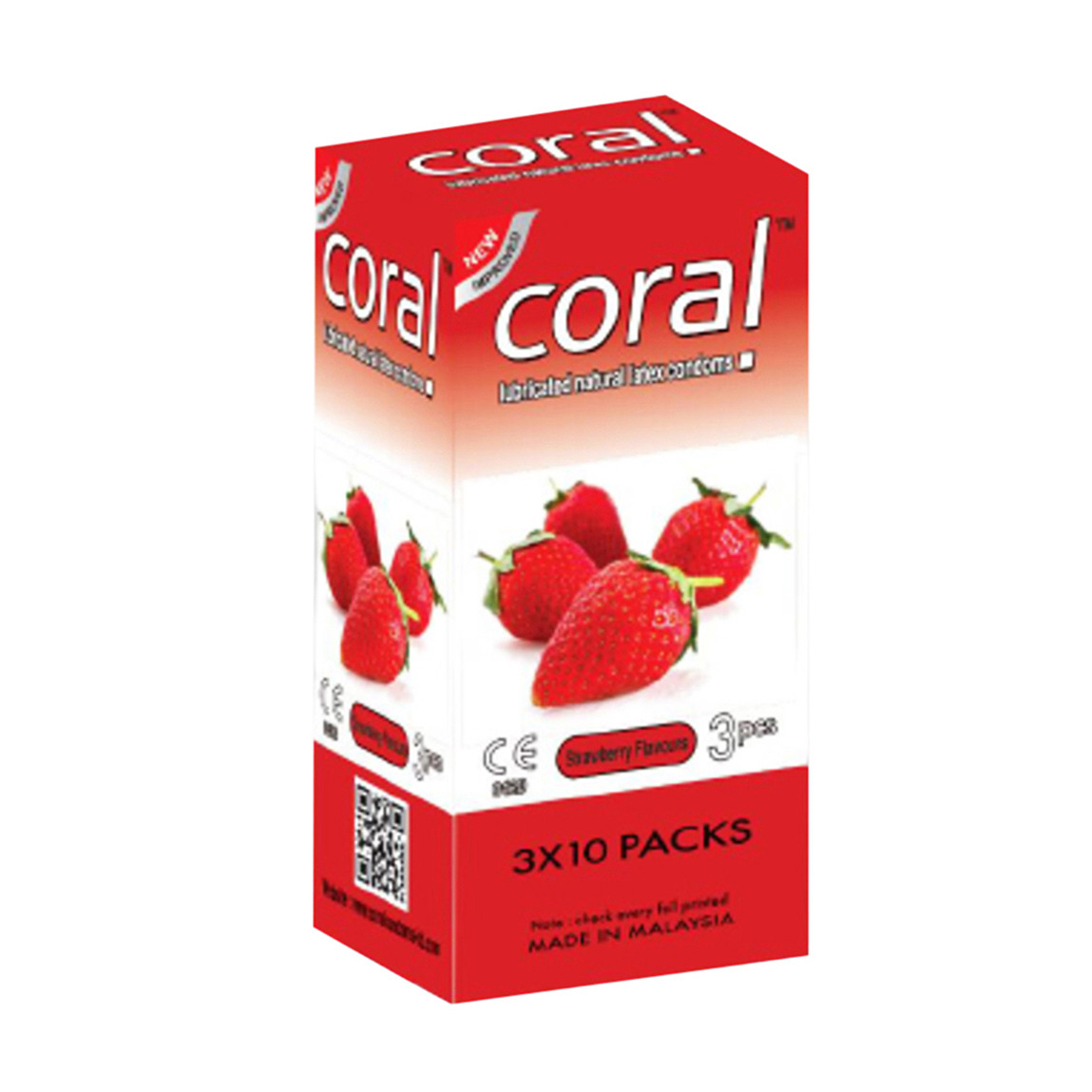 "Indulge in a deliciously sweet experience with CORAL Strawberry Flavor Condoms. Infused with the irresistible taste of ripe strawberries, these condoms offer a delightful twist to your intimate moments. Crafted with premium natural latex and lubricated for smoothness, CORAL Strawberry Flavor Condoms provide reliable protection while enhancing intimacy. Explore the luscious flavor and elevate your pleasure with CORAL Strawberry Flavor Condoms. Make every intimate encounter memorable with the tantalizing essence of strawberries."