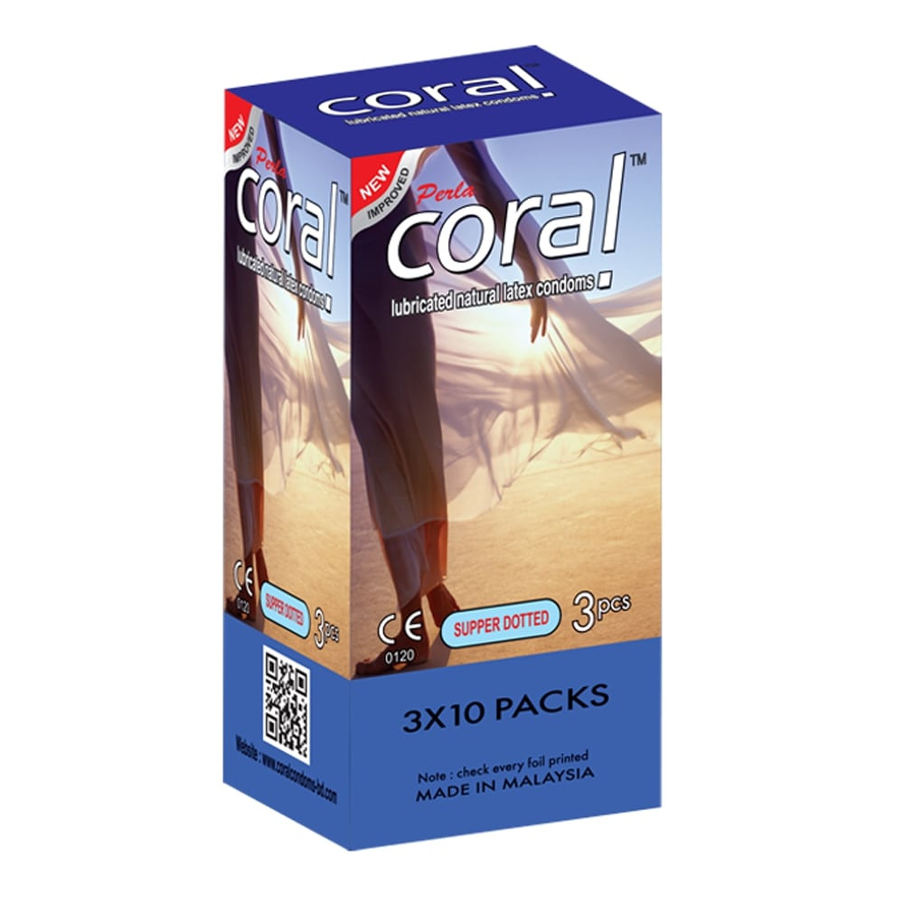 "Indulge in heightened pleasure with Coral Super Dotted Lubricated Natural Latex Condoms. Featuring an array of raised dots strategically placed for maximum stimulation, these condoms offer an exhilarating experience for you and your partner. Crafted with premium natural latex and lubricated for smoothness, Coral Super Dotted condoms provide reliable protection while enhancing intimacy. Explore the textured sensation and elevate your pleasure with Coral Super Dotted Lubricated Natural Latex Condoms. Make every moment memorable with the ultimate in sensual stimulation."