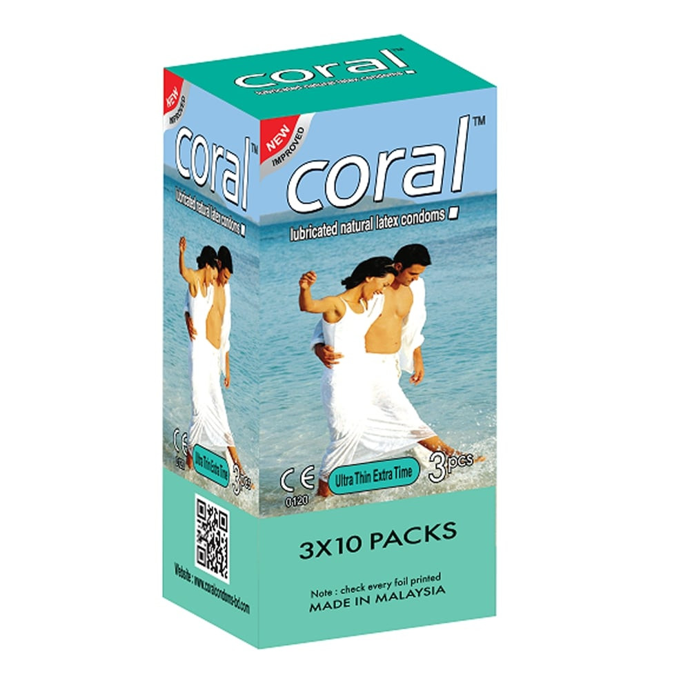 "Experience the ultimate combination of sensitivity and endurance with Coral Ultra Thin Extra Time Lubricated Natural Latex Condoms. Designed to provide a barely-there feel while prolonging pleasure, these condoms offer an exhilarating encounter for you and your partner. Crafted with premium natural latex and lubricated for smoothness, Coral Ultra Thin Extra Time condoms provide reliable protection without sacrificing sensation. Explore the heightened pleasure and extended intimacy with Coral Ultra Thin Extra Time Lubricated Natural Latex Condoms. Elevate your pleasure and make every moment unforgettable."