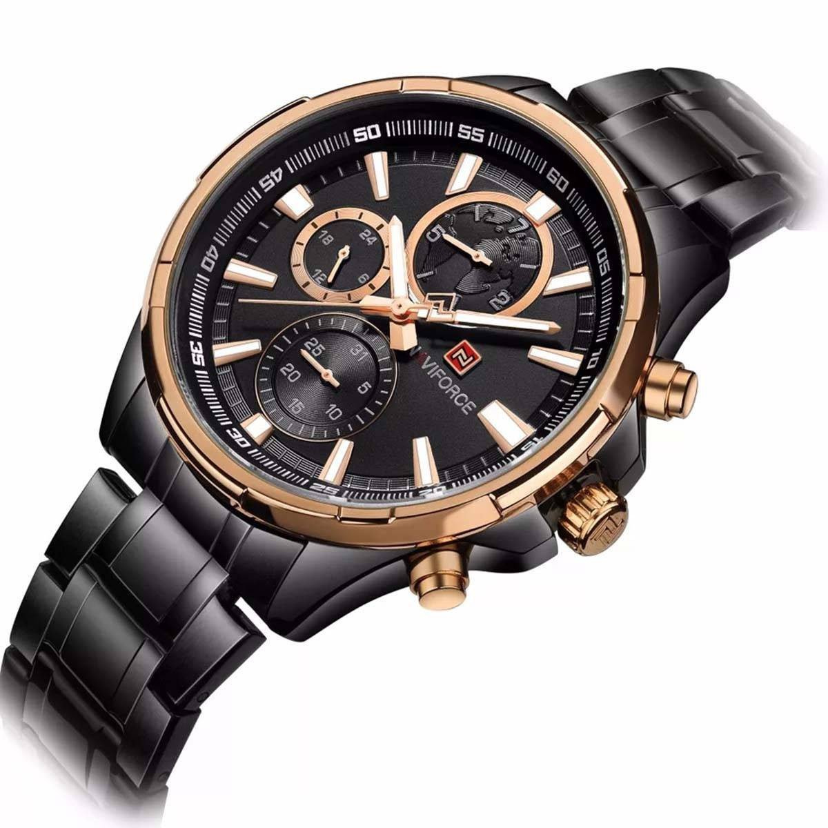 NAVIFORCE 9089 Black Two-Tone Stainless Steel Chronograph Watch for Men’s