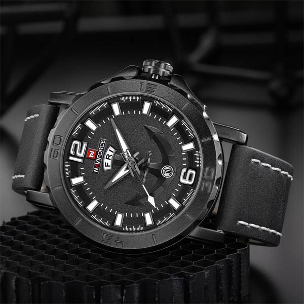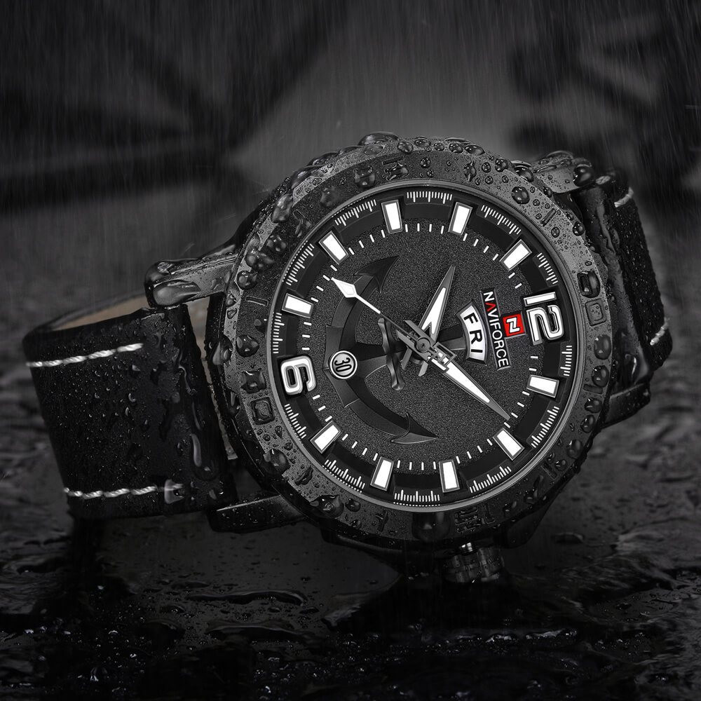 NAVIFORCE 9122 Original Genuine Leather Belt Men's Watch-Black White