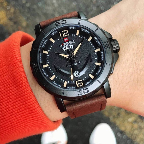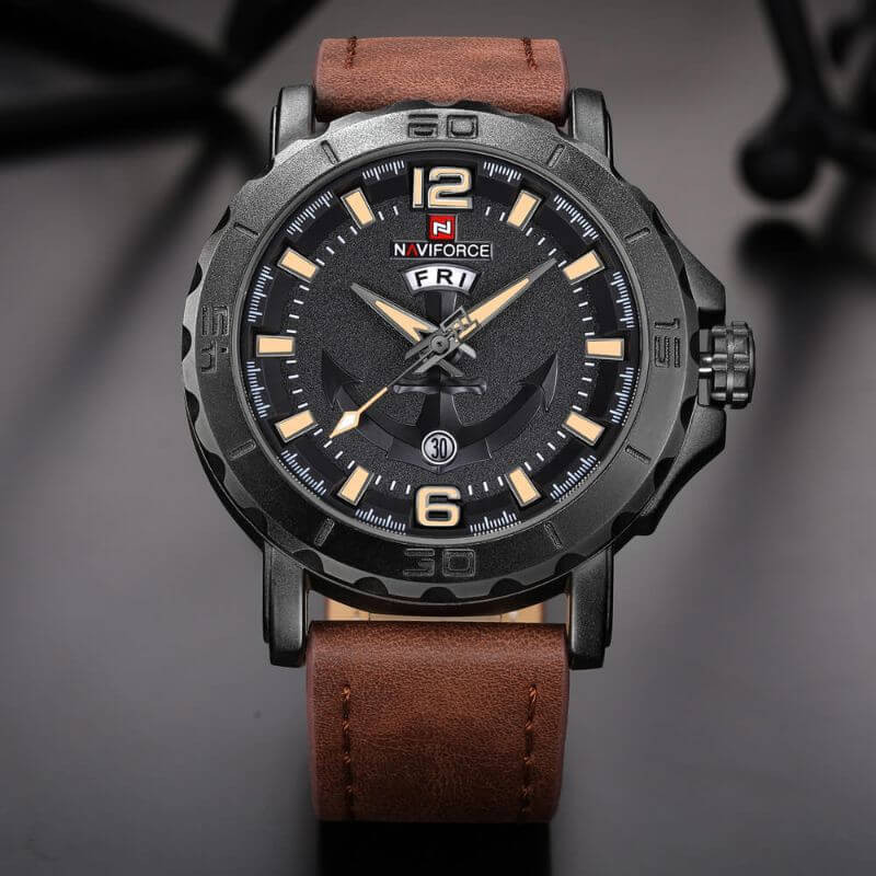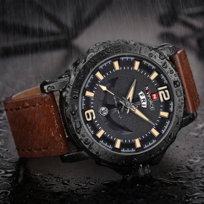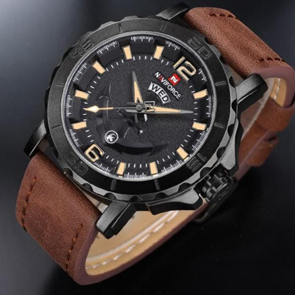 NAVIFORCE 9122 Original Genuine Leather Belt Men's Watch- Black Yellow
