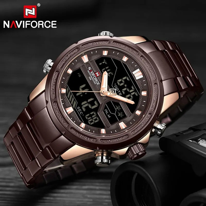 NAVIFORCE 9138 Bronze Stainless Steel Dual Time Wrist Watch For Men's - Rose Gold & Bronze