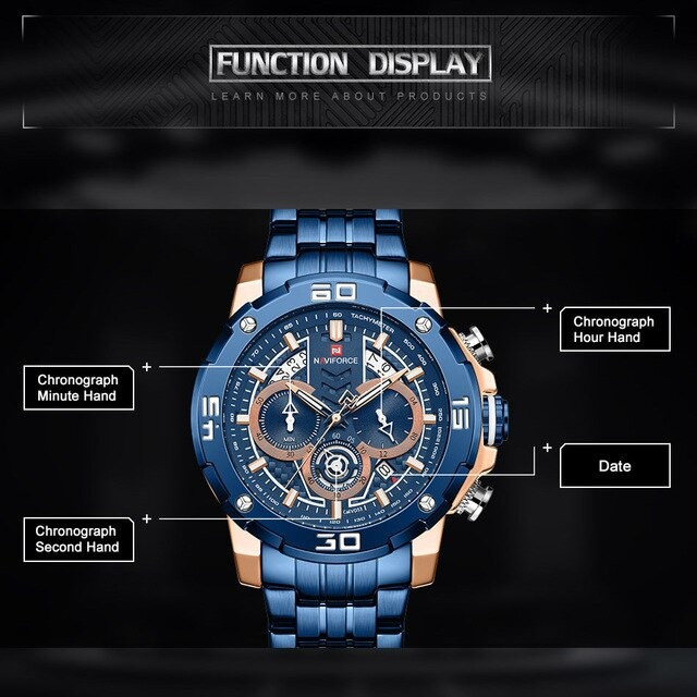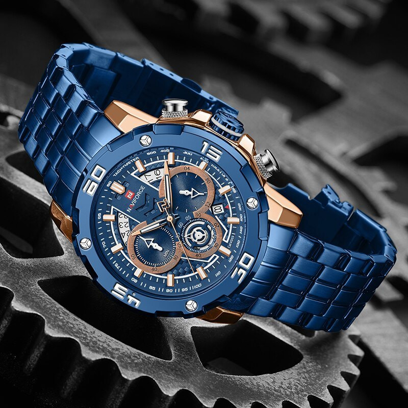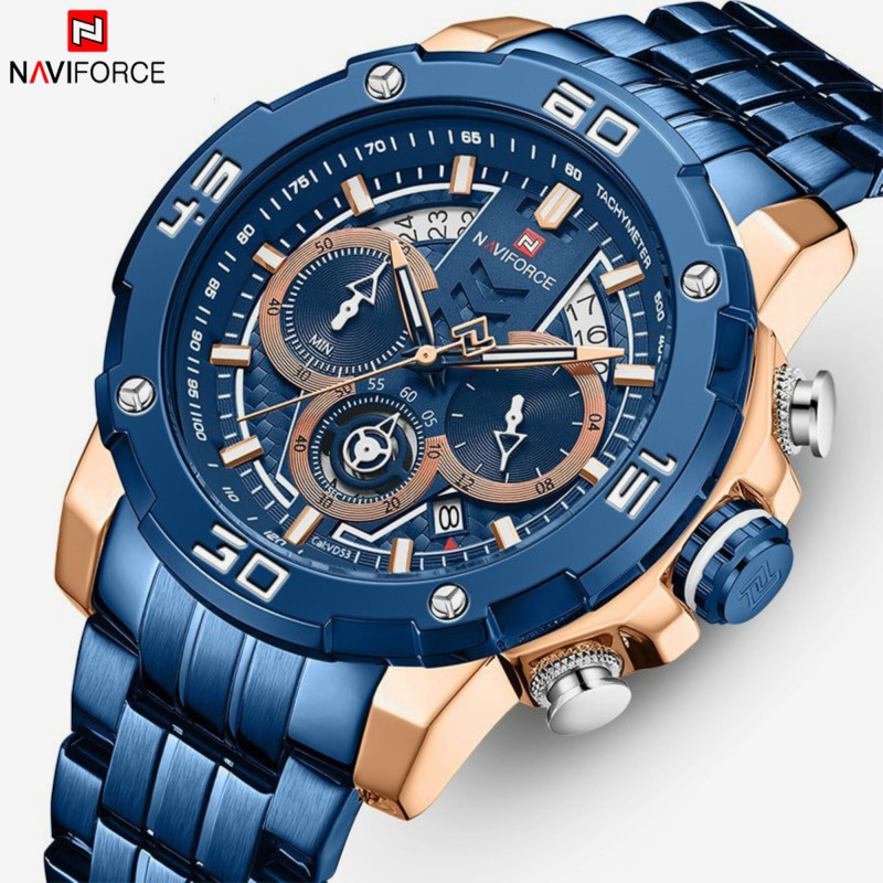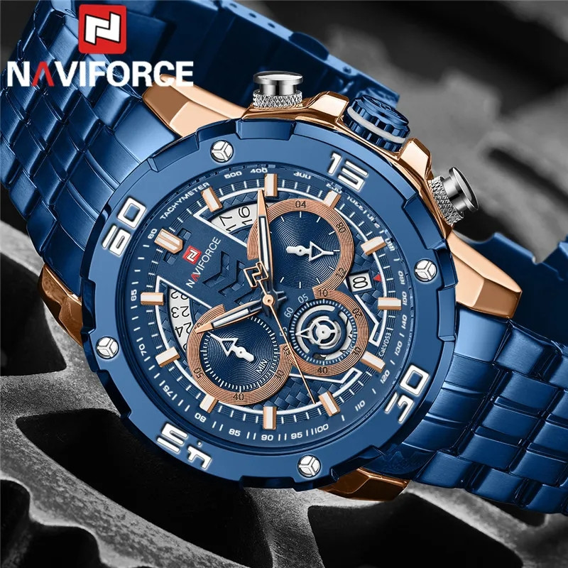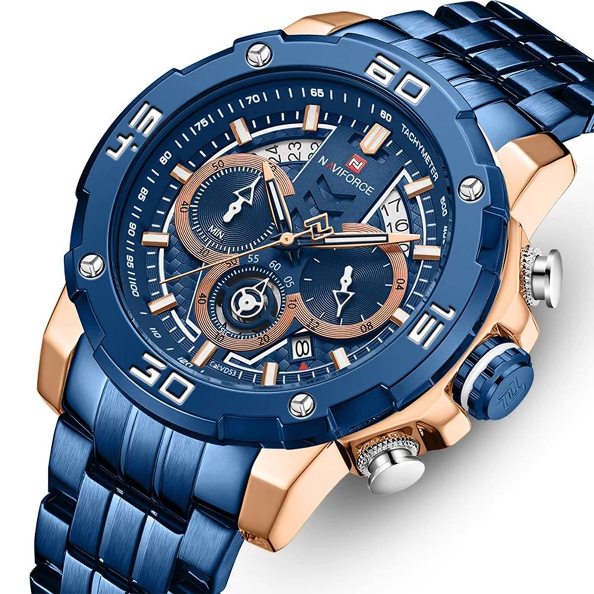 NAVIFORCE 9175 Blue Stainless Steel Chronograph Watch for Men's