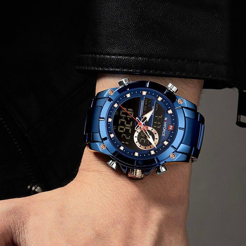 NAVIFORCE 9163 Blue Stainless Steel Dual Time Men's Watch