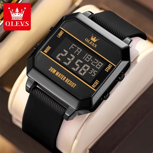 Olevs 1103 Black Soft Rubber Belt Digital Wrist Watch For Men - Black