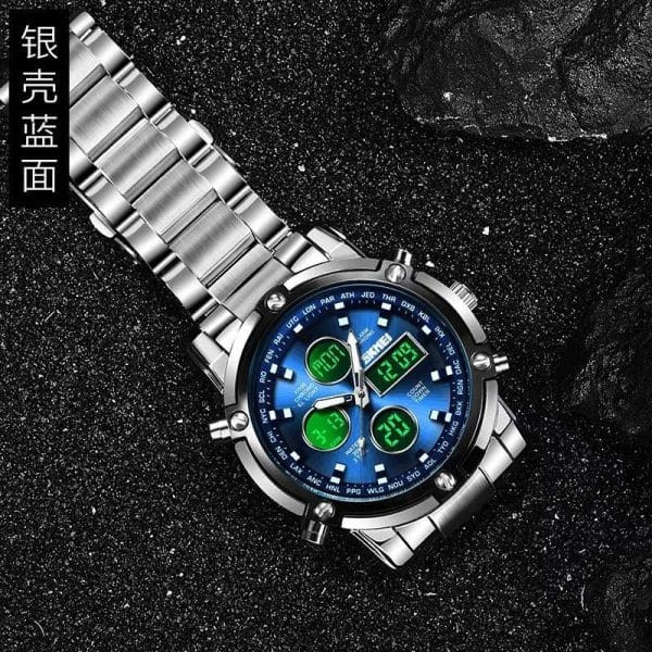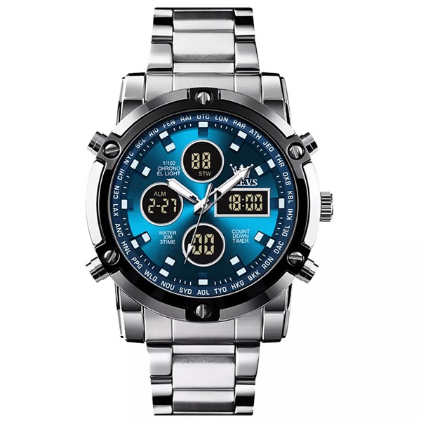 OLEVS 1106 Stainless Steel Waterproof Silver Blue Watch for Men-Blue Dial