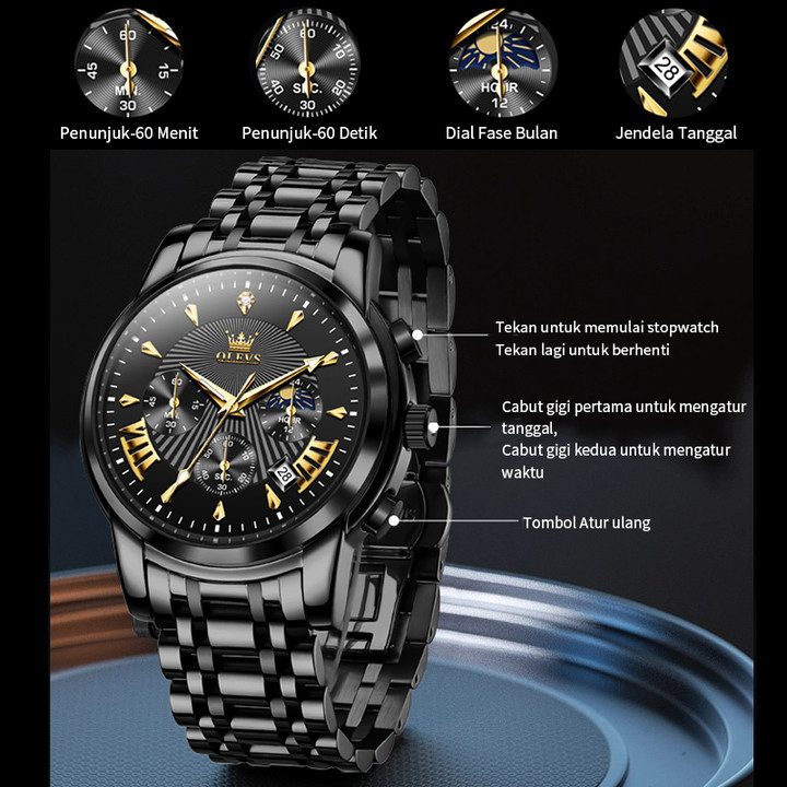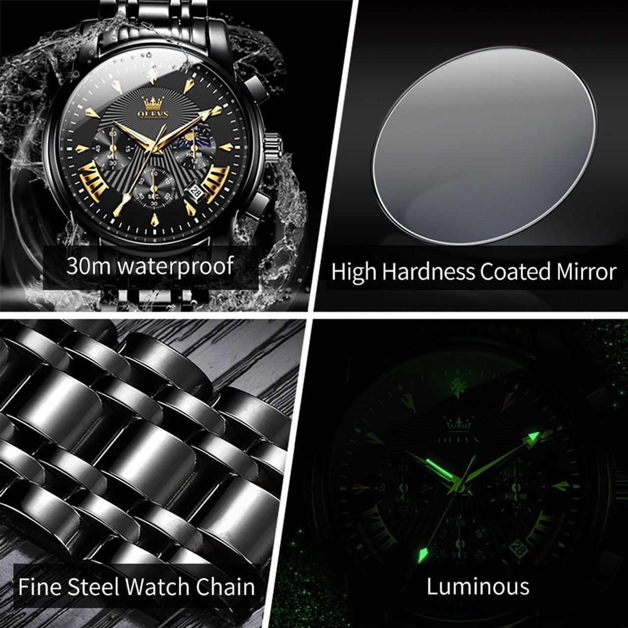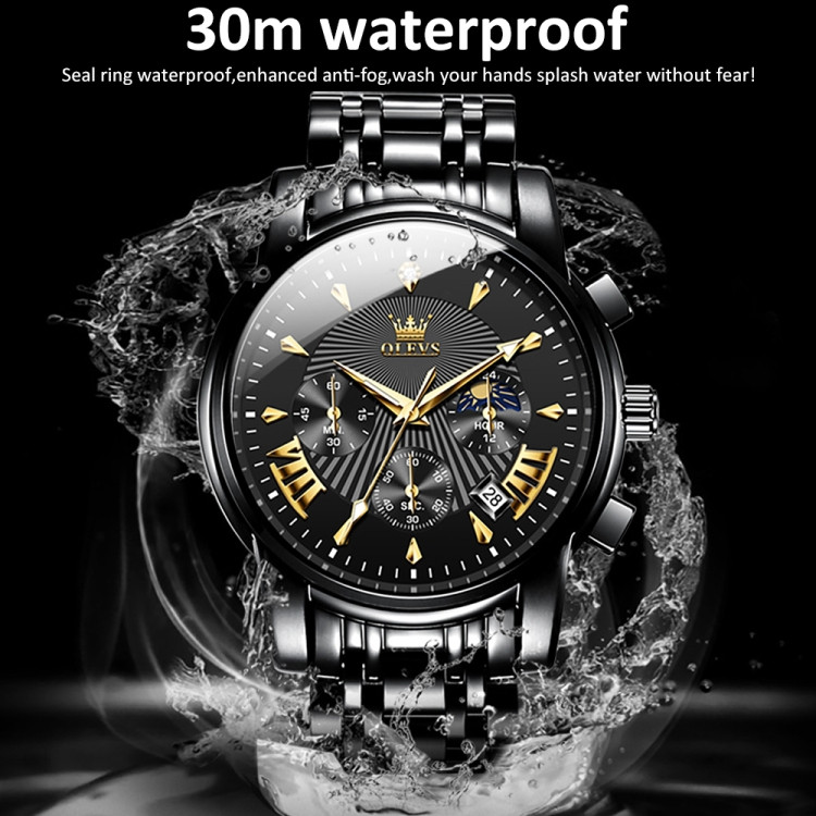 OLEVS 2892 Stainless Steel Waterproof Fashion Chronograph Black Quartz Watch For Men's