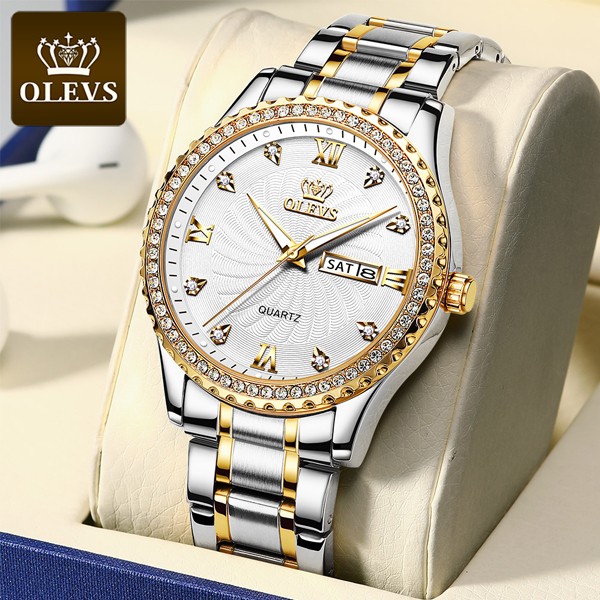 OLEVS 5565 Fashion Stainless Steel Analog Time Diamond Watch for Men's