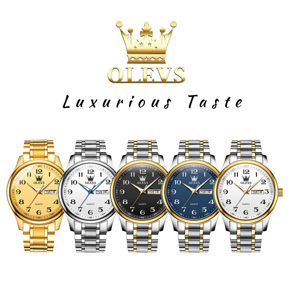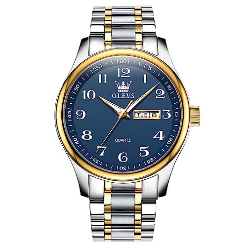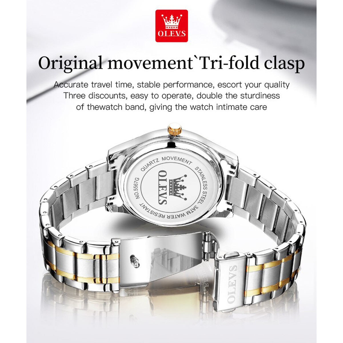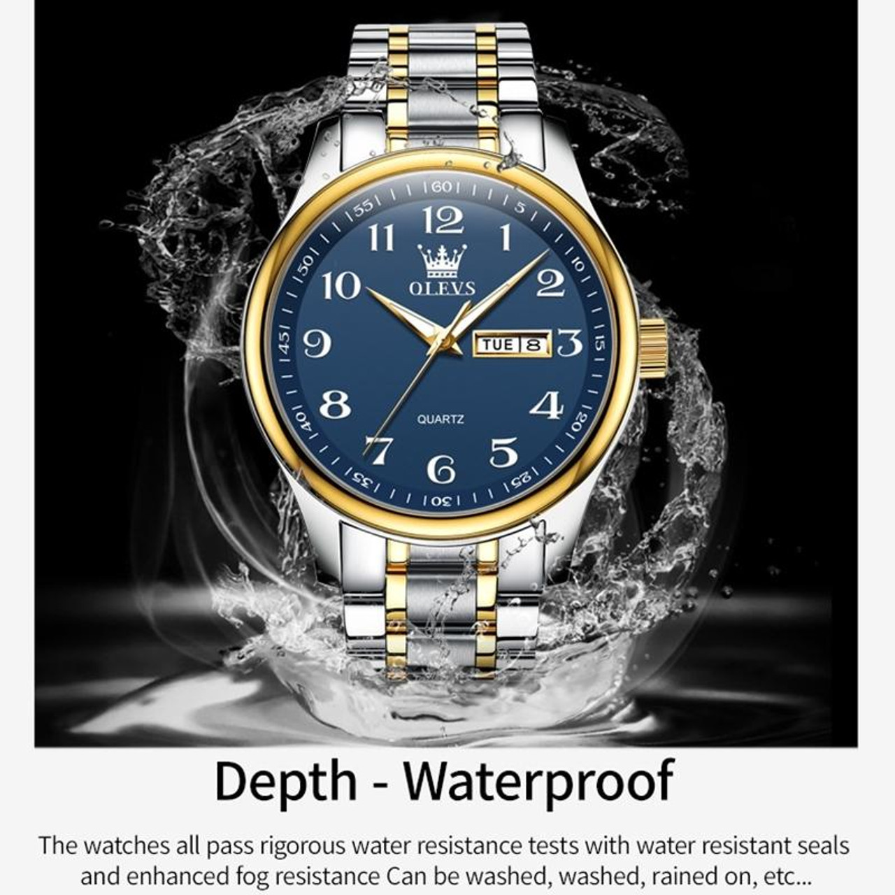 OLEVS 5567 Waterproof Classic Stainless Steel Quartz Watch for Men- Blue Dial