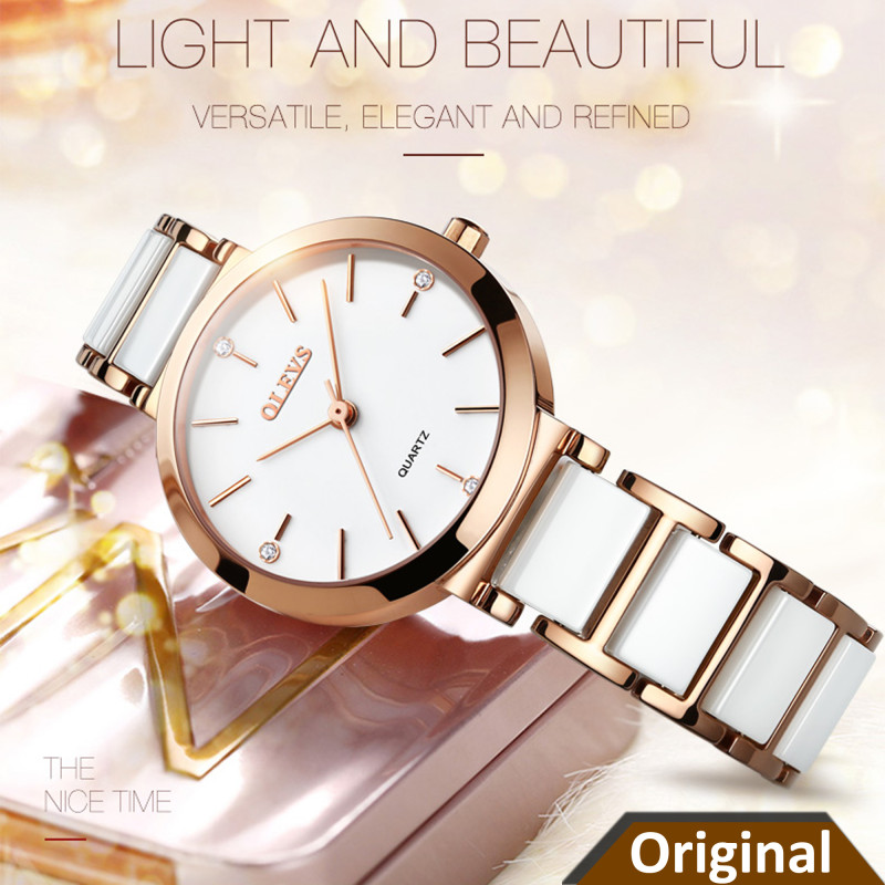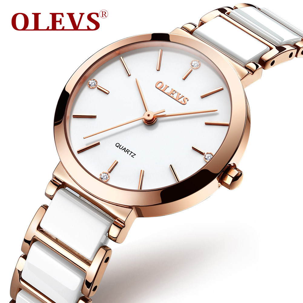 OLEVS 5877 Premium Quality Ceramics Watchstrap Analog Wrist Watch For Women - Silver