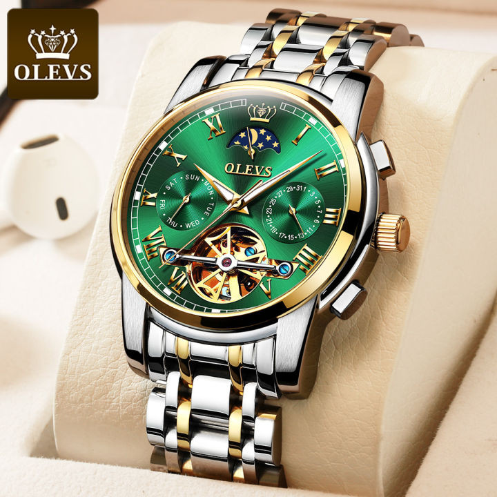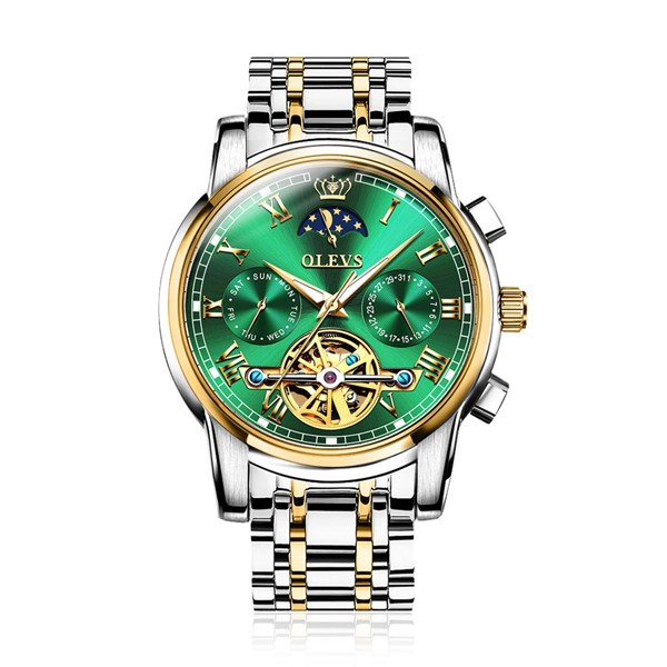 Olevs 6617 Green Luxury Mechanical Stainless Steel Waterproof Watch For Men