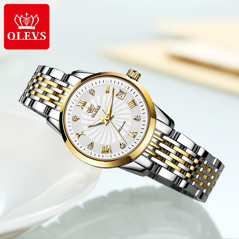 OLEVS 6630 Automatic Mechanical Stainless Steel Luxurious Watch For Women- White