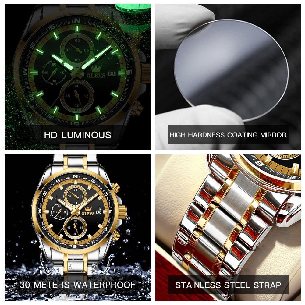 Feature- Luminous, Chronograph, Complete Calendar, Water Resistant