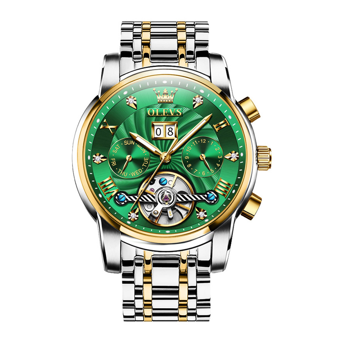 Experience timeless elegance with the OLEVS 9910 Men's Automatic Mechanical Tourbillon Self-Wind Luxury Stainless Steel Watch. Crafted with precision and sophistication, this watch features a mesmerizing tourbillon movement that showcases the intricate mechanics of timekeeping. With its self-winding mechanism, you'll never have to worry about battery changes, while its waterproof design ensures durability and reliability in any setting. Made from high-quality stainless steel, this watch exudes luxury and style, making it the perfect accessory for any occasion. Elevate your look with the OLEVS 9910 Men's Automatic Mechanical Tourbillon Self-Wind Luxury Stainless Steel Watch.