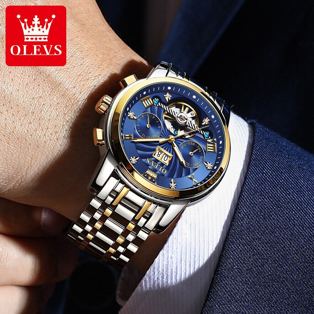 OLEVS 9910 Men's Automatic Mechanical Tourbillon Slef-Wind Luxury Stainless Steel Watch