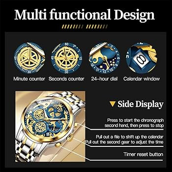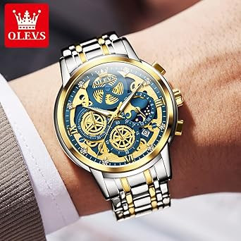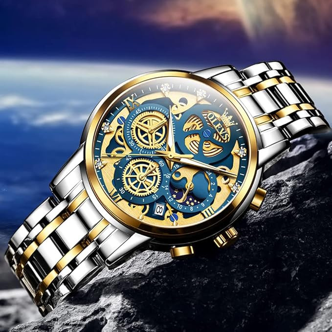 OLEVS 9947 Waterproof Stainless Steel Watch for Men-Blue Dial