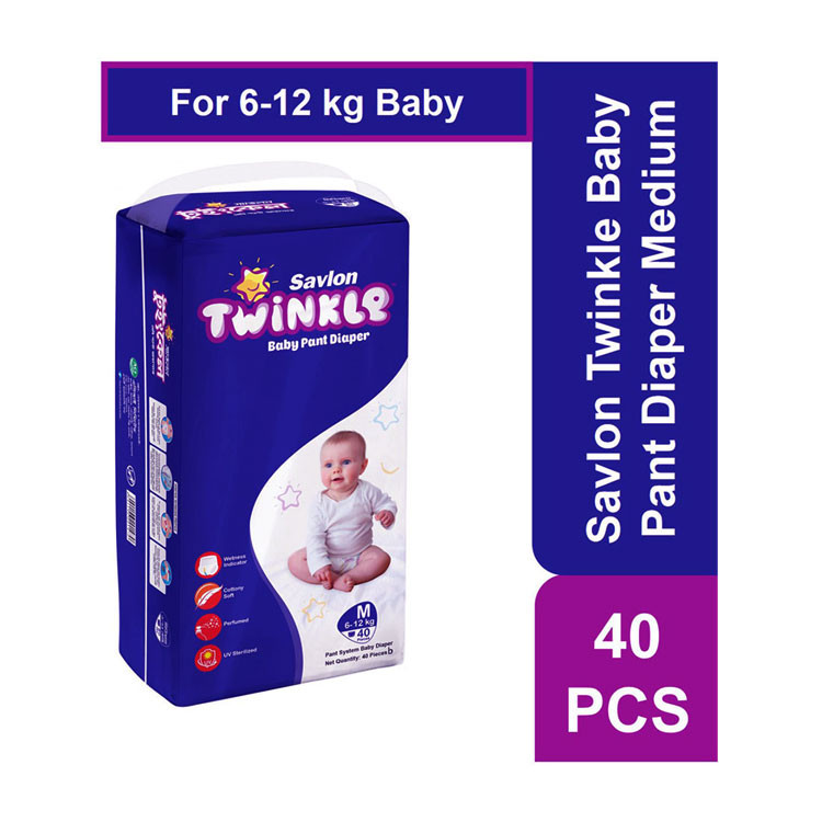 Savlon Twinkle Baby Pant Diaper Medium 40 Pieces is a soft diaper. Twinkle Baby Diaper is an unfailing companion in the wonderful journey called motherhood. Completely Leak Proof.